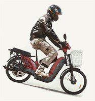А вот Luyuan RВ-208 — велогибрид. Правда, не совсем типичный: блок фары пытались облагородить, есть «приборка» и зачаточный задний блок световых приборов, а грузоподъёмность заявлена такая, что не всякий скутер столько увезёт. Фишка модели — сиденье пассажира можно разложить в огромную багажную платформу. Но и это не всё: откидываются боковины — и получается электровело-грузовик! Огромная корзина спереди — как в сетевых магазинах.