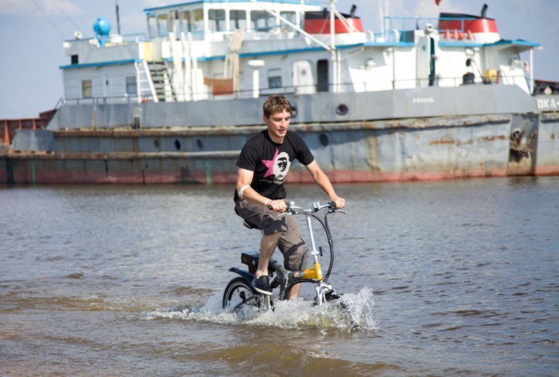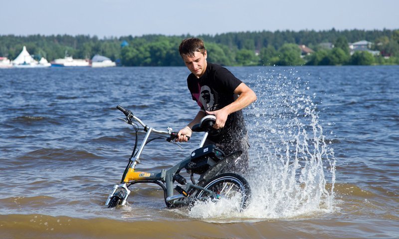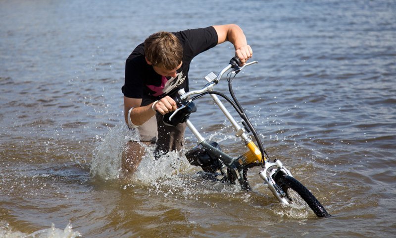 С радостью можем сказать, что велогибрид Eltreco успешно выдержал все испытания. Как вы сами можете видеть, двигатель продолжает работать и под водой, и на суше.