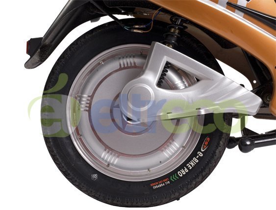 Лаконично смотрятся пластмассовые фигурные накладки и амортизаторы. А монолитное заднее колесо не только удачно вписывается в общий дизайн модели, но и прячет в себе электродвигатель, редуктор и тормозной барабан, защищая их от негативных воздействий внешней среды.