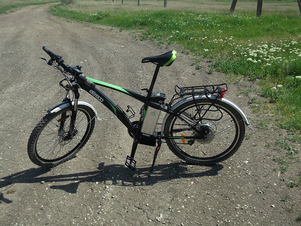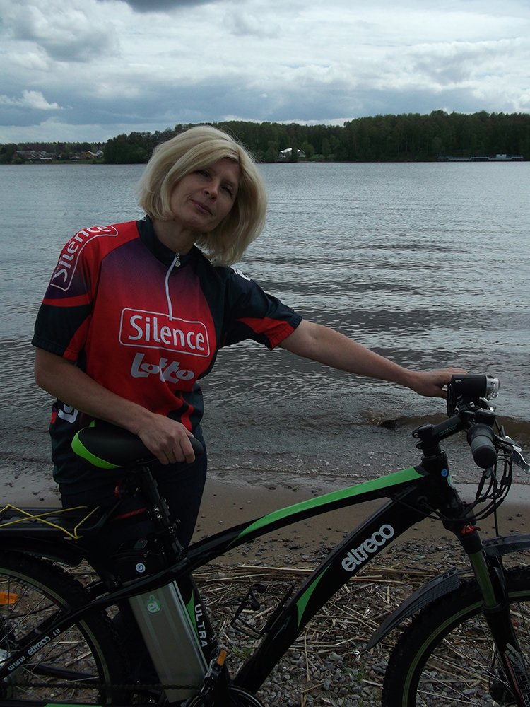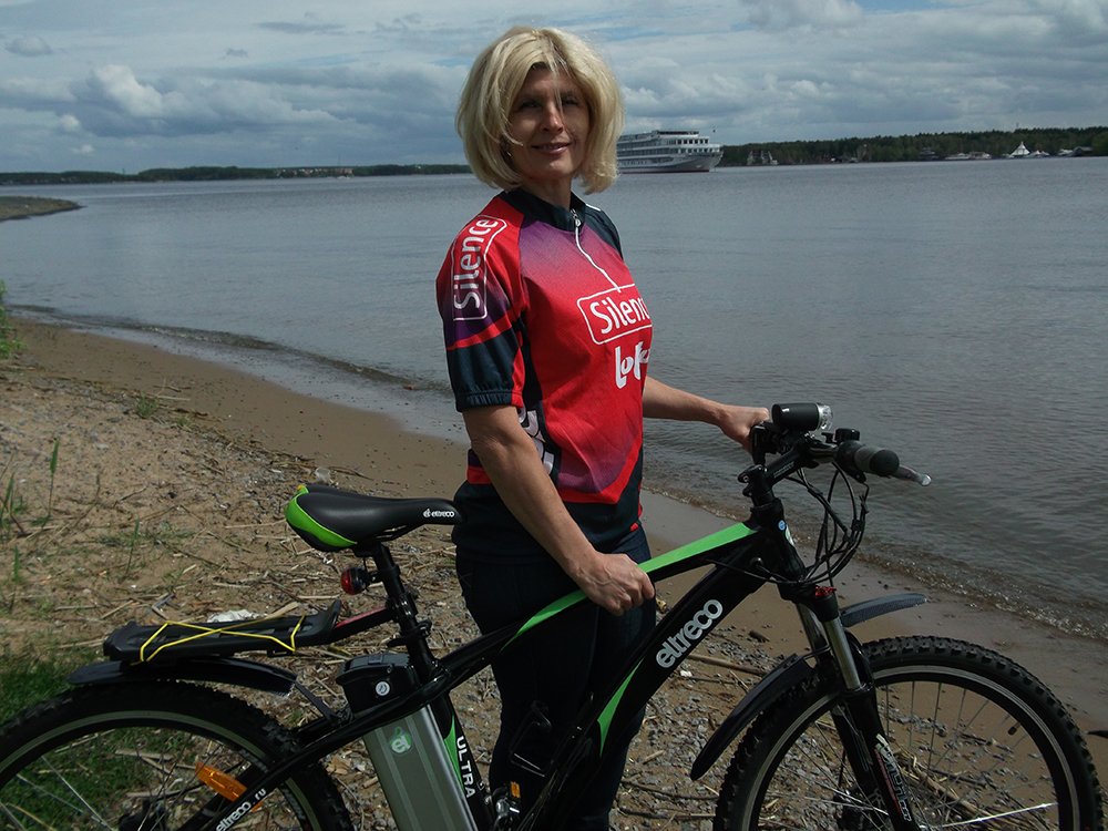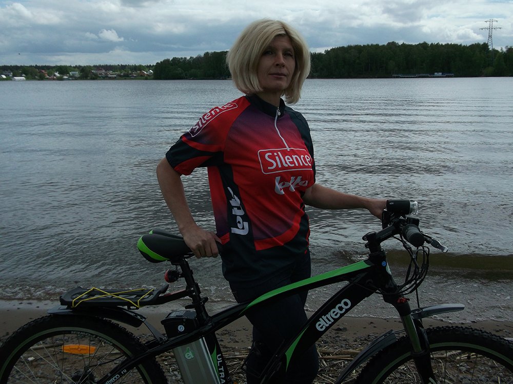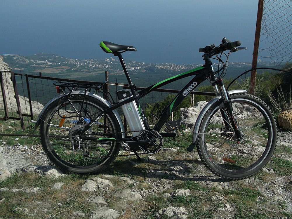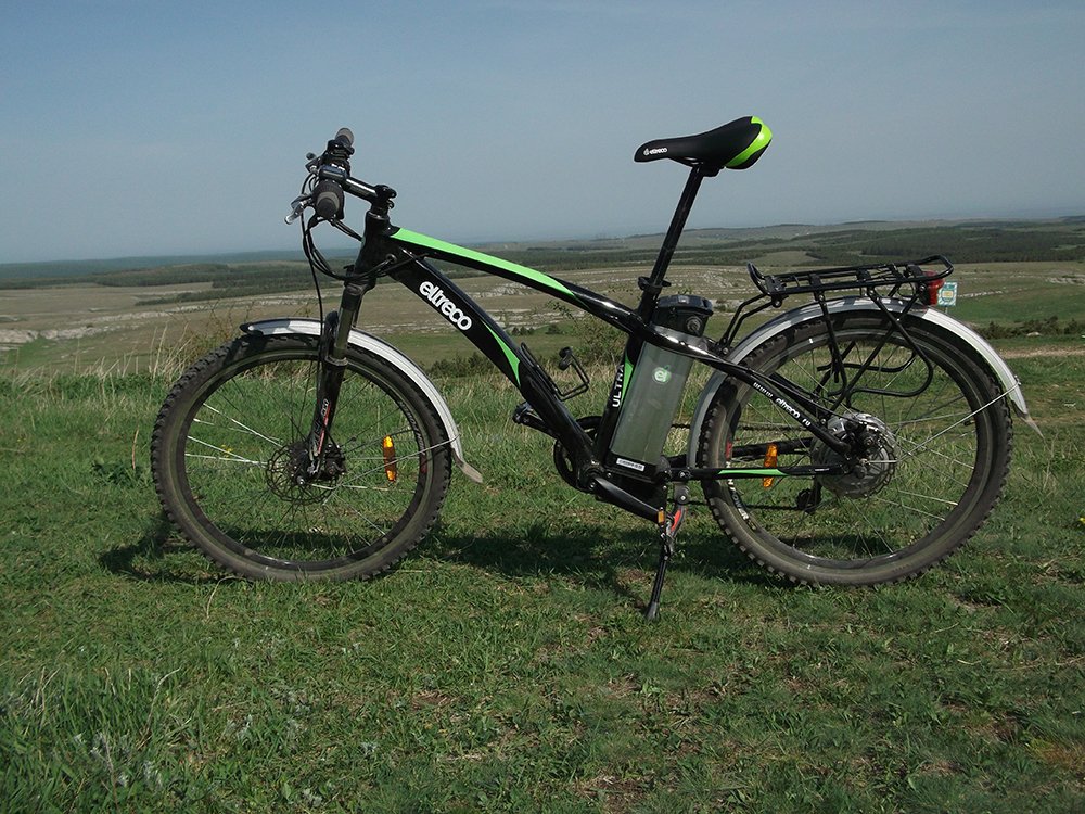 Здравствуйте! Я Петрова Ольга Николаевна, владелец электровелосипеда, представленного мне для теста в конце апреля 2012 года. Имея дачу на крымском побережье Чёрного моря в районе Алушты мне часто приходилось спускаться к морю из своего поселка на простом горном велосипеде. Постоянно поднимаясь семь километров в горы после купания, решила немного облегчить себе жизнь, узнав из интернета об электровелосипедах от компании Ельтреко. Выбор пал на модель Ultra EX. К стандартной комплектации я попросила добавить легкосъёмные крылья и багажник на подседельную трубу как на модели Ultra GT. Такой переделкой я убила двух зайцев, сделав его более универсальным, пригодным выполнять больше задач.