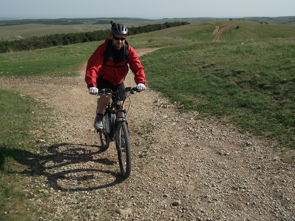 Я попросил прокатиться на электрическом горном велосипеде у своих друзей в путешествии по Крыму. Сам я заядлый велосипедист с пятилетним горным стажем, на велосипеде езжу с детства. Минуты три мне объясняли как всё работает. Всё просто. Единственная проблема и отличие от горного велосипеда — назначение тормозных ручек. За задний тормоз в электрическом отвечает левый рычаг, за передний — правый. Боялся перепутать рычаги. Ехать мне приходилось по конкретным камням и падать через руль совсем не хотелось.