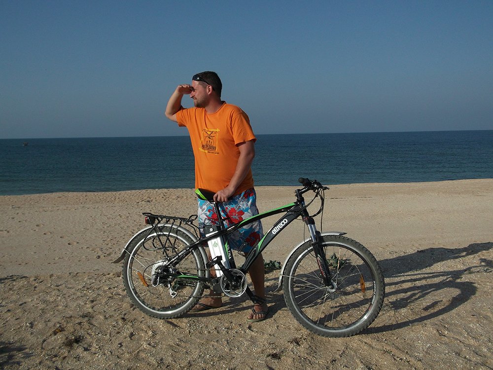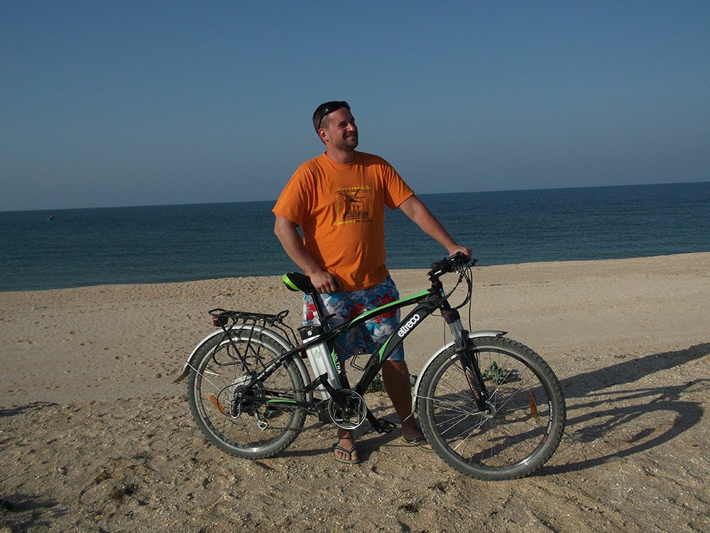 Четвёртый год я приезжаю в Крым по приглашению своих друзей. В этом году в нашей компании появился электровелосипед. У нас в Швеции подобная техника очень распространена, но это чаще всего или маленькие складные электровелосипеды, или большие городские на 28-дюймовых колёсах. Распространены электрические заправки, где можно зарядить велосипед, находясь на работе. Считаю, что за электрическими велосипедами будущее.