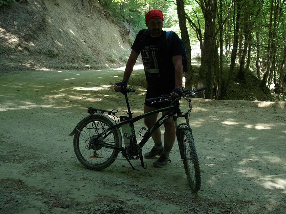 Ехать в горах, конечно, довольно легко и безопасно, тормоза схватываю намертво, моторчик бодренький. Не понравилось только узкое седло, приходится вставать на педали на неровностях. Иногда, когда крутизна подъёмов была больше 40 градусов, приходилось спешиваться, и вот тогда мне приходилось толкать немного больше, чем простой горный велосипеде. Зато на спусках большая масса позволяла разогнаться мне до больших, чем на простых велосипедах, скоростей.