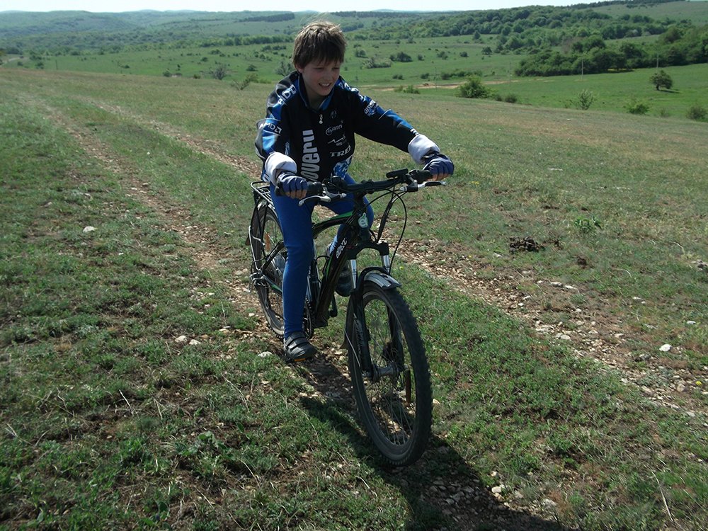 В этот день папа меня взял с взрослыми велосипедистами в горы. Я уже три раза участвовал в подобных путешествиях, хотя мне тяжело поспевать за всеми. Тем не менее я старался держаться в группе лидеров. Да, это не в Москве по двору кататься. Упасть можно на каждом шагу. Постоянно камни, щебёнка, колючки.