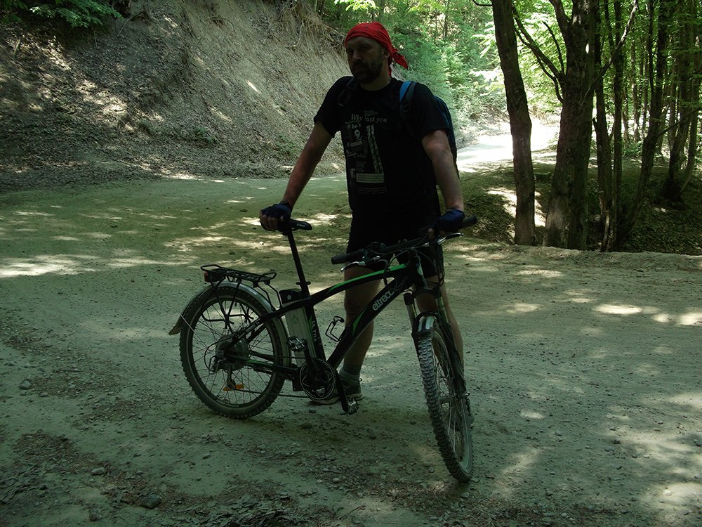 Нечасто можно встретить такую диковинку, как электровелосипед в Москве. А тут приезжаю к друзьям в Крым и вот здрасьте. Интересная штуковина… Заставляет обратить на себя внимание. Вес у меня за 110 кг, телосложение богатырское, рост около 2 метров, не дай бог развалится подо мной на горных дорогах. Покатался, понравилось. Особенно впечатляюще было обгонять где-нибудь на крутом подъёме группу велотуристов с поклажей, неестественно быстро вращающих педали своих велосипедов, задумчиво медленным, с некоторой вальяжностью, педалированием своего электровелосипеда. При этом мотор почти не выдавал себя шумом, помогая творить чудеса на ялтинских серпантинах в районе Ай-Петри. Сил у аккумулятора хватало на 40–50 километров в условиях высокогорья, серпантинов, а то и явного бездорожья.