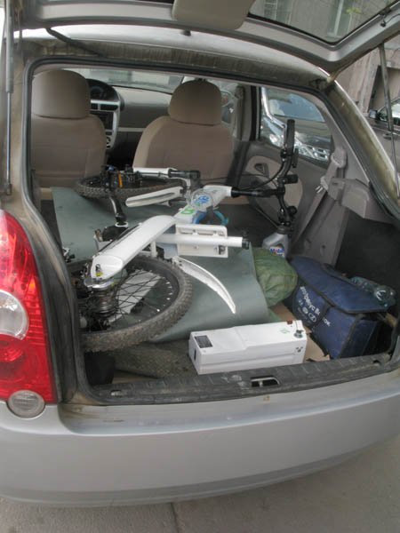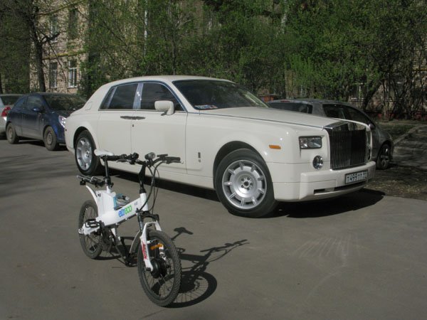 Фото 2. Велогибрид входит в салон малолитражки, если сложить задние сиденья
