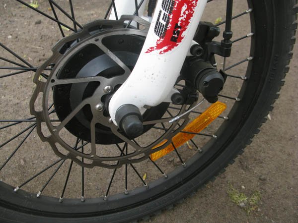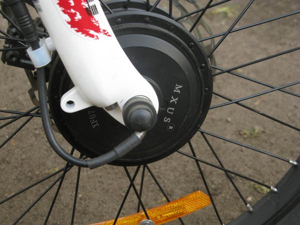 Необычность конструкции — электромотор установлен в ступице переднего колеса, таким образом транспортное средство можно отнести к разряду полноприводных 2WD. По сравнению с распространёнными мотор-колёсами, видимо являющиеся типовыми в Китае, здесь конструкция очень компактная, хотя мощность нормальная для гибрида — 250 Вт. Мотор-колесо спереди позволило сделать развесовку почти идеальной (21/22 кг), что ценно при переноске.