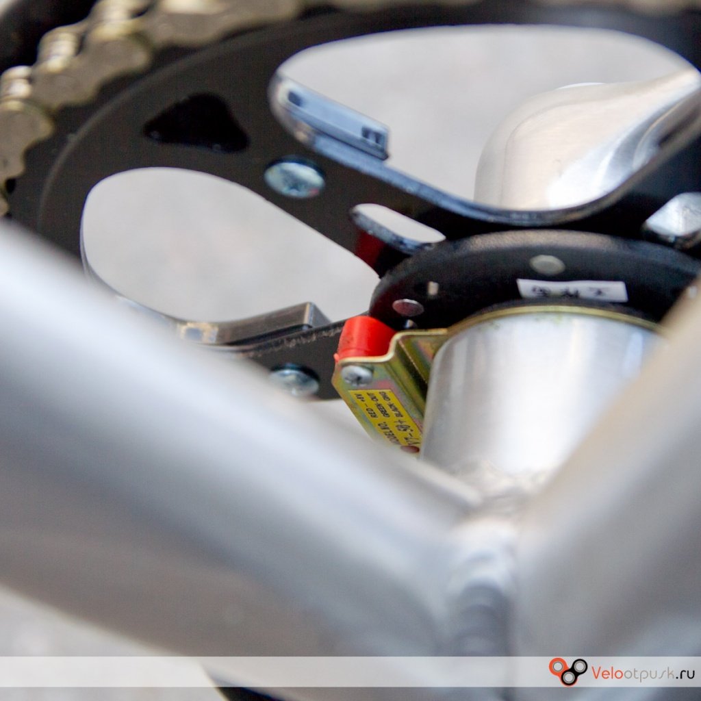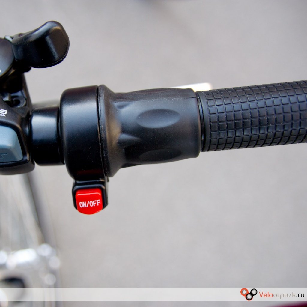 С аккумулятором всё более-менее понятно, а где же двигатель велосипеда? А сам двигатель спрятан прямо в задней втулке — можно и не заметить, что он там есть. Мощность этого электрического двигателя — 250 Вт, что по словам производителя, позволяет разгонять велосипед до вполне приличных 30 км/ч. Также производитель утверждает, что максимально возможное пройденной расстояние на одной зарядке составляет аж 45 километров. Для управления электродвигателем на руле установлен аналог ручки газа на мопедах и мотоциклах и кнопка включения электродвигателя.