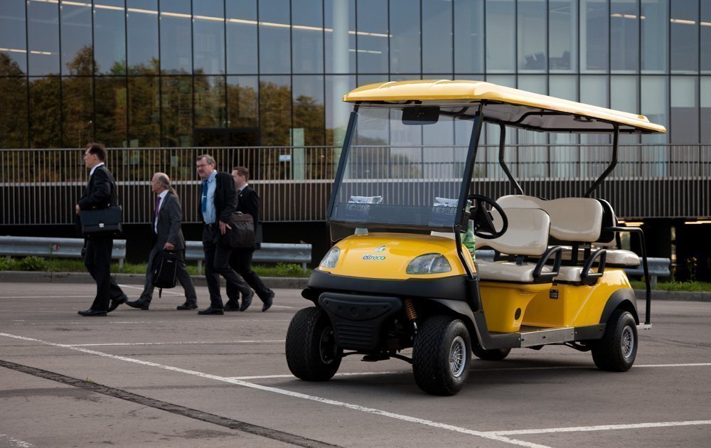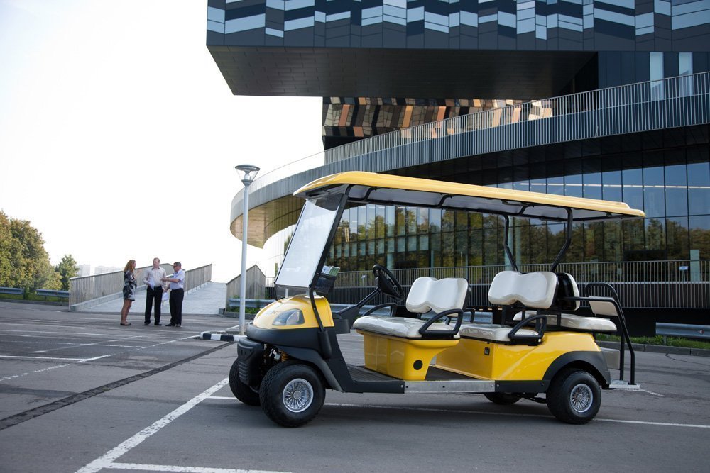 Перед павильоном были продемонстрированы образцы техники от известных брендов, в числе которых гольфкары Eltreco