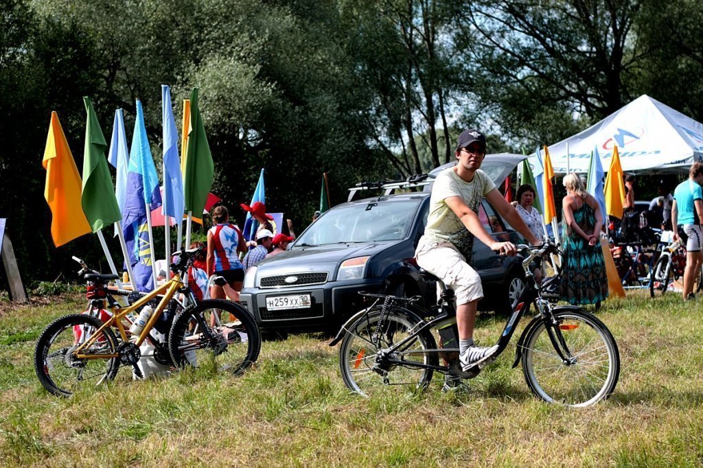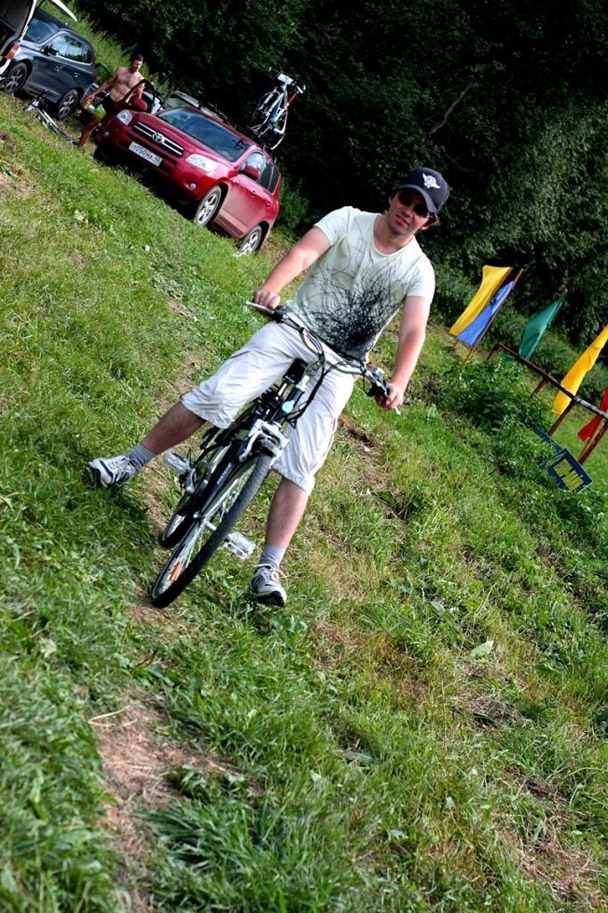 Кросс-кантри. В субботу ездил на соревнования по кросс-кантри. Подготовка к поездке началась со слов: «Так, мне надо зарядить фотоаппарат, телефон и велосипед». Категории «электровелосипеды» в зачёте не было, пришлось принимать участие в качестве зрителя-фотографа. Добираться до места проведения соревнований недалеко, но в основном по пересечённой местности. Ехали неспешно, поэтому в основном я крутил педали на 2 или 3 скорости, а двигателем помогал себе только на сложных участках и подъёмах. Одним словом, передвигаться на гибриде без помощи двигателя (вдруг батарея сядет) вполне можно и не особо сложно. Чтобы не бегать с велосипедами по трассе в поисках хорошего места для съёмки, было принято решение оставить байки на стартовой поляне и пойти дальше пешком. Обычно в таком случае велосипеды ставят домиком вот так ///\\\ и связывают их несколькими замками. Всё просто, казалось бы. Но электровелосипед настолько тяжелый, что его пришлось уравновешивать 3 или 4 обычными велосипедами. В итоге получилось примерно так: /////\\. После соревнований мне наконец удалось сфотографироваться на Provence.