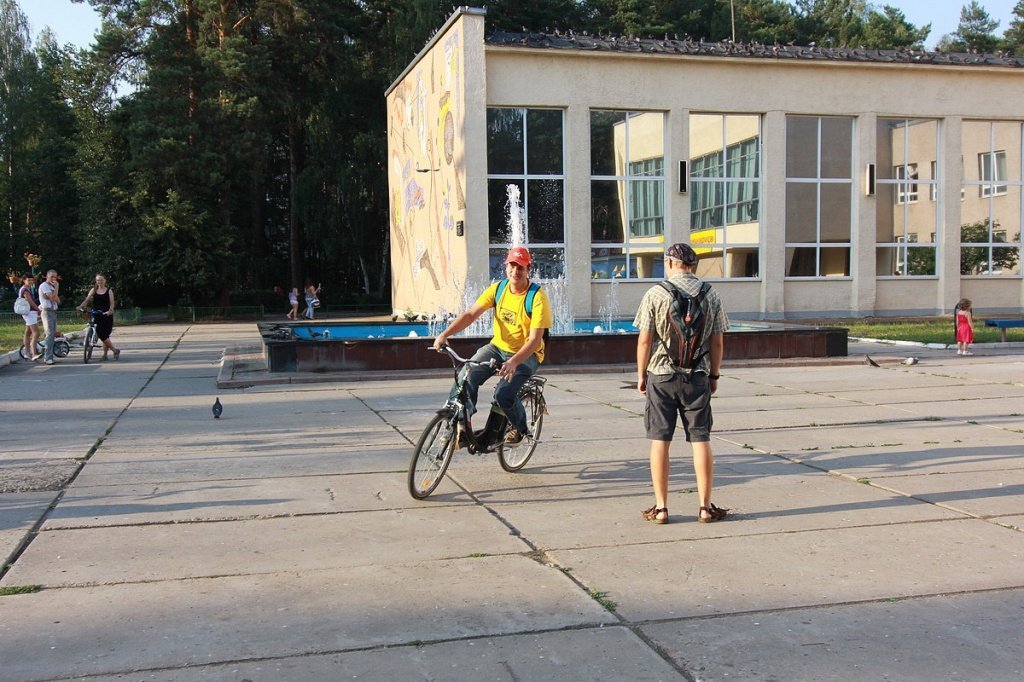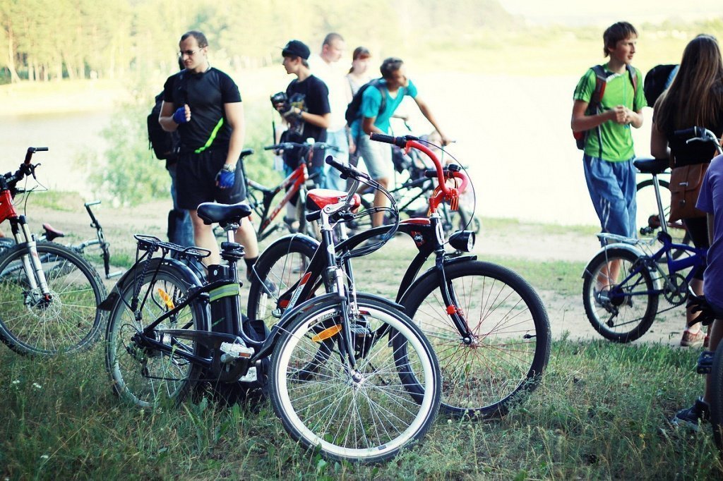 Прогулка за город. Я живу в небольшом городе на юге Московской области, и чтобы выехать на природу, нужно проехать всего лишь пару-тройку километров. В один из дней состоялась велопрогулка на природу в компании друзей. Собрались мы на площади, где мои друзья устроили небольшой тест-драйв. Всем велогибрид понравился. Несмотря на то, что все они продвинутые велосипедисты, которых не запугаешь большими расстояниями и трудными маршрутами, всем понравилось кататься на велосипеде и не крутить педали. Далее мы дружной толпой поехали кататься по ближайшим окрестностям. Ехать на гибриде в колонне оказалось просто и удобно. На маленькой скорости двигатель особо не нужен, можно спокойно крутить педали, если надо разогнаться, это можно сделать легко и плавно, помогая себе двигателем. Через некоторое время мы выехали на просёлочную дорогу. Тут сразу стали заметны некоторые недостатки велосипеда, о которых я говорил ранее. Во-первых, очень короткие и жёсткие грипсы (ручки руля), и седло тоже жестковато. Во-вторых, на неровной дороге очень сильно гремит аккумулятор. Это с учётом того, что я его слегка закрепил широкой лентой на липучке, что заметно уменьшило продольные колебания, но не сильно повлияло на поперечные. Это всё, конечно, не критично. Грипсы и седло меняются легко и стоят не очень дорого. А вот с креплением аккумулятора надо что-нибудь придумать. Возможно, сделать какие-то подкладки на раме, чтобы лучше его фиксировать. Но в целом прогулкой я остался доволен. Электродвигатель помогает преодолевать подъёмы и сложные участки, а также быстро ускориться, если надо нагнать остальных.