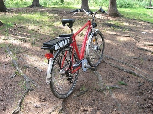 Скоростной режим в таких условиях определяется не мощностью мотора или ног, а в основном навыками велосипедиста, неподрессоренной массой, размером покрышек и рисунком протектора. Очевидно, что не предназначенный для таких дорог велогибрид будет проигрывать MTB-хардтейлу. Было проведено сравнение на сухих лесных грунтах. На велогибриде, управляя мотором ручкой газа, мне удалось достигнуть средней скорости 17 км/ч на волнистой лесной автодороге с корнями и колеёй, и средней скорости 15 км/ч на синглтреке (узкой лесной тропинке). При этом все детали велосипеда, особенно багажник, так сильно дребезжали, что складывалось впечатление, что долго они в таком режиме не протянут. На MTB-велосипеде эти показатели на той же самой трассе достигли 21 км/ч и 19 км/ч соответственно. Много это или мало — 4 км/ч? Редкий человек гоняет по лесу на скорость из спортивного интереса. Для отдыха достаточно скорости 10 км/ч, иначе не успеваешь смотреть по сторонам, но поддерживать такую скорость можно и без мотора.
