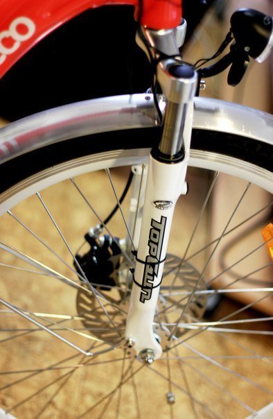 Передняя амортизационная вилка. Будет от неё больше вреда или пользы — покажет время. Спереди — светодиодный фонарь, работающий от штатного аккумулятора.