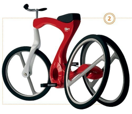 Искусство перемещения на велосипеде познаётся, как правило, ещё в детстве и, опять же как правило, начинается с трёхколесных аппаратов. Наиболее комфортно избавиться от «третьего лишнего» позволяет разработка американского профессора кафедры индустриального дизайна университета Пардью (2). В велосипеде Shift нет приставных колёс, а родители избавлены от необходимости неотлучно сопровождать своё чадо во время поездки.