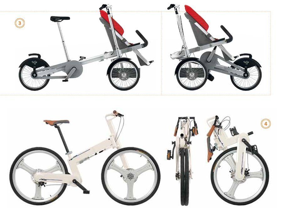 Коль скоро речь зашла о компактности, уделим внимание и стильному творению английского инженера-дизайнера Марка Сандерса iF Mode (4) , создателя едва ли не самого знаменитого в истории мирового дизайна портативного велосипеда Strida. Новая модель имеет автоматический складной механизм, заставляющий полноразмерный 14-килограммовый велосипед за считанные секунды уменьшиться до плоской «бандероли» размером 27x66 см.