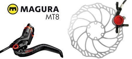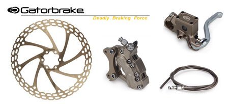 Велосипед комплектуется тормозами Gator с 6 поршнями, диаметр переднего и заднего дисков — 203 мм. Они обладают уникальной останавливающей способностью, устойчивы к истиранию, и более чем идеально подходят велосипеду. Также можно установить тормоза Gator с 8 поршнями, или, если вам нужно самое лучшее, тормозную систему Magura MT8.