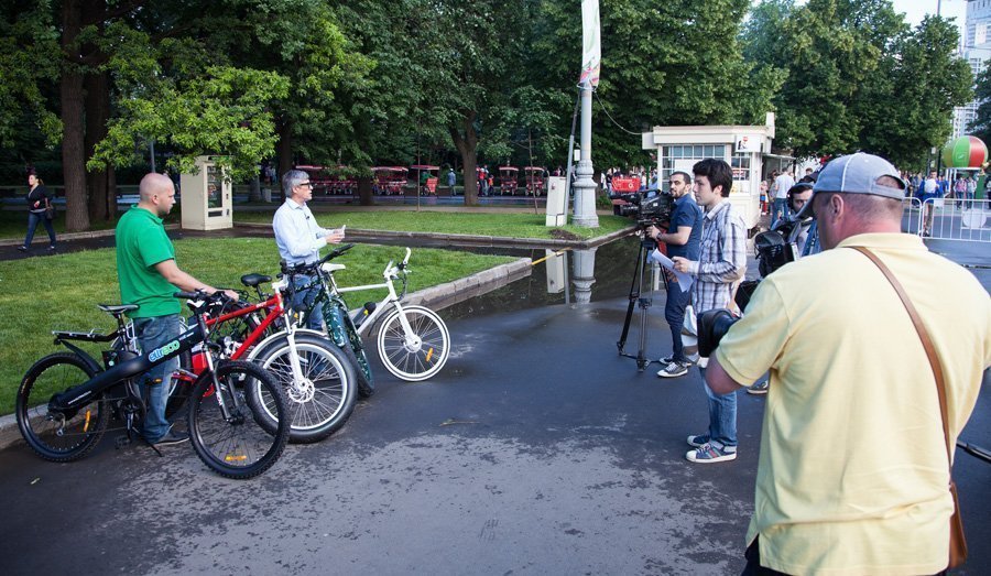 А потом на фестиваль приехала съёмочная группа телеканала Москва 24. Ведущему настолько понравились велогибриды, что они решили снять о них целую передачу.