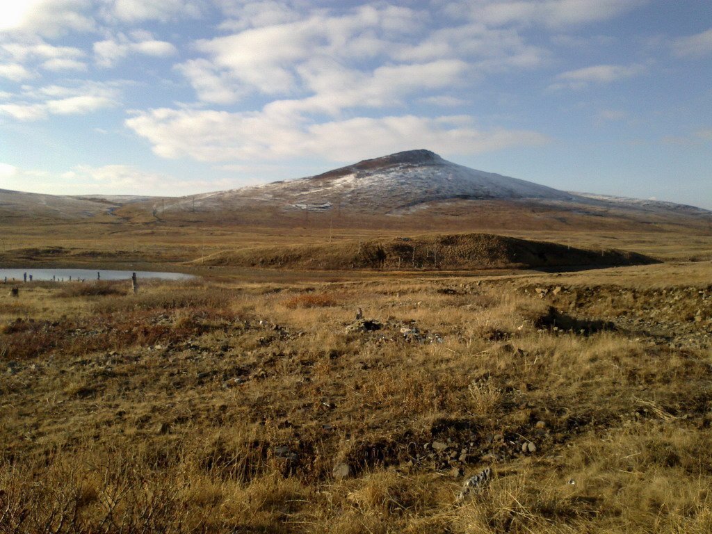 Вид на плато Ергалах, видны горы Ергалах и Медовая.