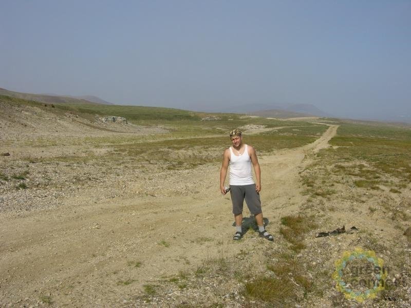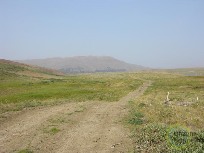 Выехали 26 вечером, прекрасная погода, насекомых почти нет. Из-за северного и западных ветров газ используется периодически. Первая ночёвка была у горы Медовая и водопада. В июне 2011 г. я уже ездил в этом направлении, поэтому уже знал, по каким дорогам ехать не надо. Водопад высох и покрылся мхом, но ручей бежит из ущелья г. Медовой, правда не по водопаду, а под землёй, поэтому в месте ночёвки была вода. Гора Медовая 606 м — это плато Ергалах. Утром проснулись, покушали и в путь. В районе пос. Черногорка появилась моб. связь, она есть и на горе Чёрная. По дороге появились балки, пара из них была заброшена. Буровая появилась к северу от г. Медовая. Там же сделали тракторную дорогу. Подъём на гору Чёрную был долгий.