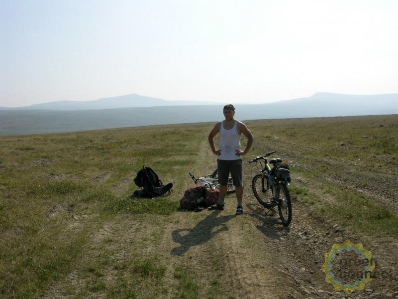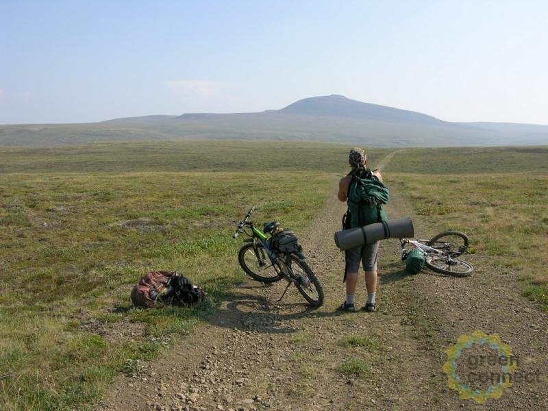 Давняя мечта была побывать на этой горе. Это одна из самых высоких отметок, куда можно добраться по земле, по воде можно добраться и до гор высотой 1100–1200 м и выше. Да и на велосипедах в том направлении никто до нас не был. По крайней мере, не видел такой информации. Мы доехали до подножья горы, а далее пешком. Хорошее и сухое было лето. Легендарное, можно сказать, в последний раз, подобное лето было в 60-х гг. Тогда пересохло много рек, которые никогда не пересыхали на моей памяти. Неснежная и ранняя весна плюс небывало тёплое лето.