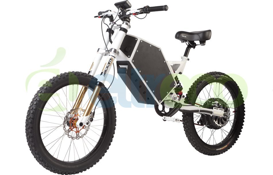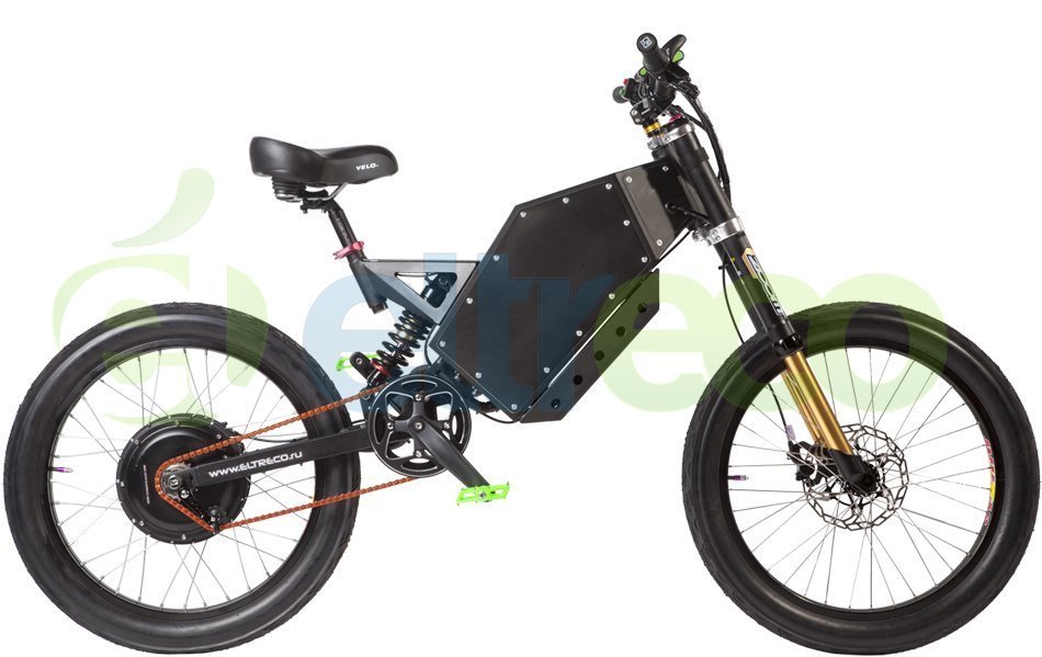 Эти электровелосипеды отличают сверхпрочная рама, позволяющая эксплуатацию в экстремальных условиях, невероятно мощный для велогибрида мотор (дающий на пике до 6000W), который способен развить скорость до 80 км/ч! Масляные амортизаторы с большим ходом позволяют выдерживать большие нагрузки. Встроенный в раму аккумулятор надёжно защищён от внешних воздействий. А дисковые гидравлические тормоза Clarks Skeletal обеспечат наиболее эффективное торможение.