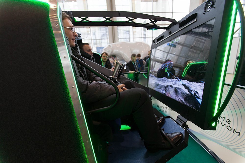 Естественно, что в центре пристального внимания публики находились современные 4D-аттракционы, где посетитель, надежно закреплённый в подвешенном в кресле-гамаке отстреливался до последнего патрона от разного рода недоброжелателей по пути виртуального следования в точку победного финиша. Другим посетителям больше по душе пришлись аркады, где виртуальная реальность 3D-очков дополняется движением платформы под ногами. Также нашлось немало желающих прокатиться на настоящем полноразмерном спортивном мотоцикле — на виртуальном треке он вёл себя точно также как настоящий норовистый литровый спортбайк, конечно, добродушно прощая ошибки пилота. Экспоненты не обошли вниманием и маленьких посетителей, для которых бесконечные тиры и прочие «стрелялки» стали возможностью оторваться, что называется «по-взрослому».