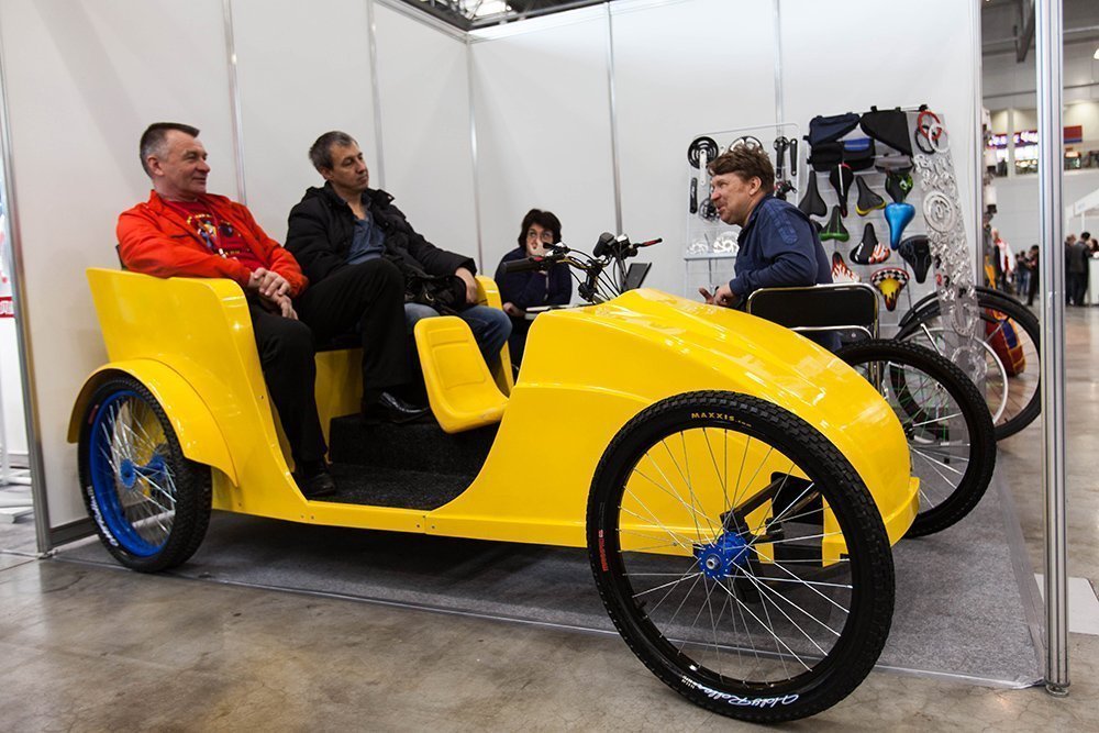 Всеобщий интерес и умеренные восторги присутствующих не могла не вызвать локация кастом-байков — шедевров велосипедостоения, уникальный дизайн которых является ярким примером того что можно сделать своими руками, когда они растут из нужного места. По завершению выставки компетентное жюри выбрало самый-самый из участвующих в конкурсной экспозиции велошедевров.
