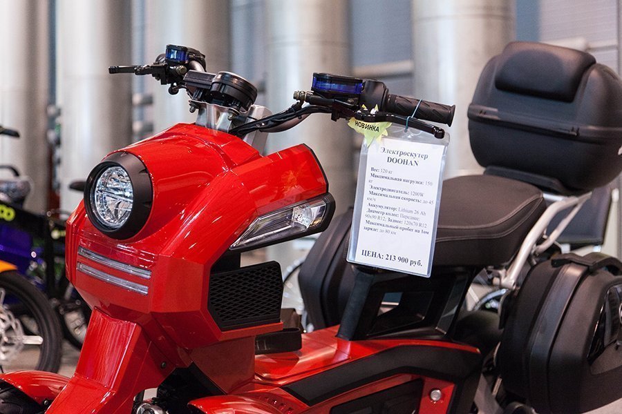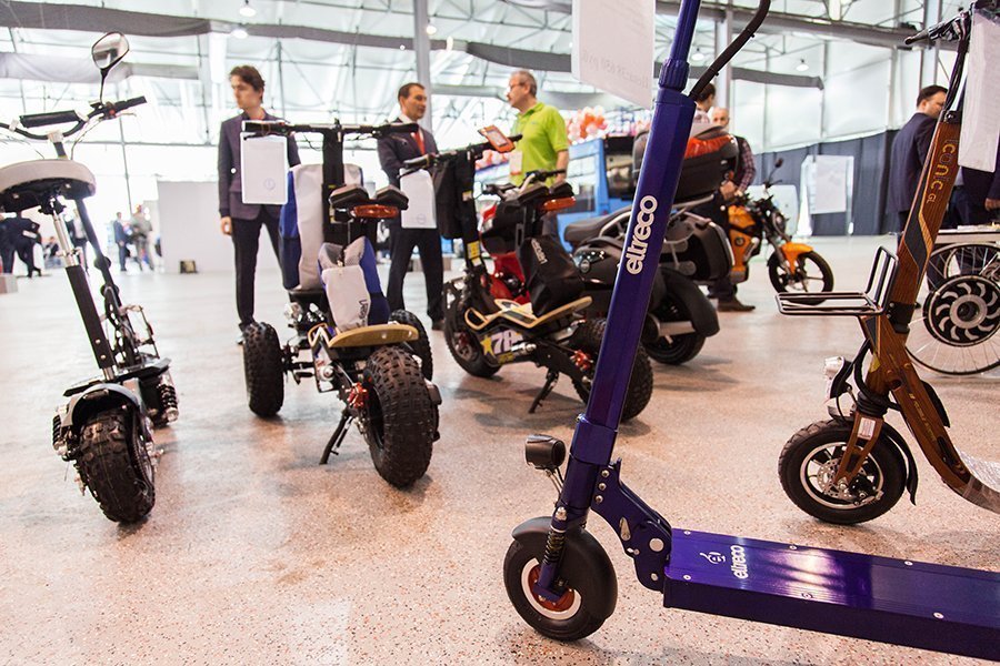Помимо этого многочисленные посетители стенда компании Eltreco с удовольствием тестировали другие модели, представленные на выставке: новые модели велогибридов, электроскутеры и другой товар.