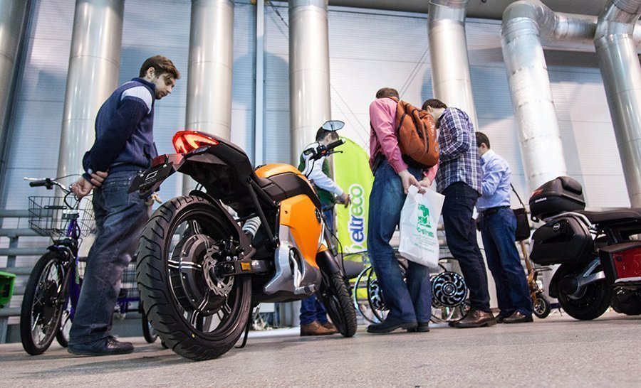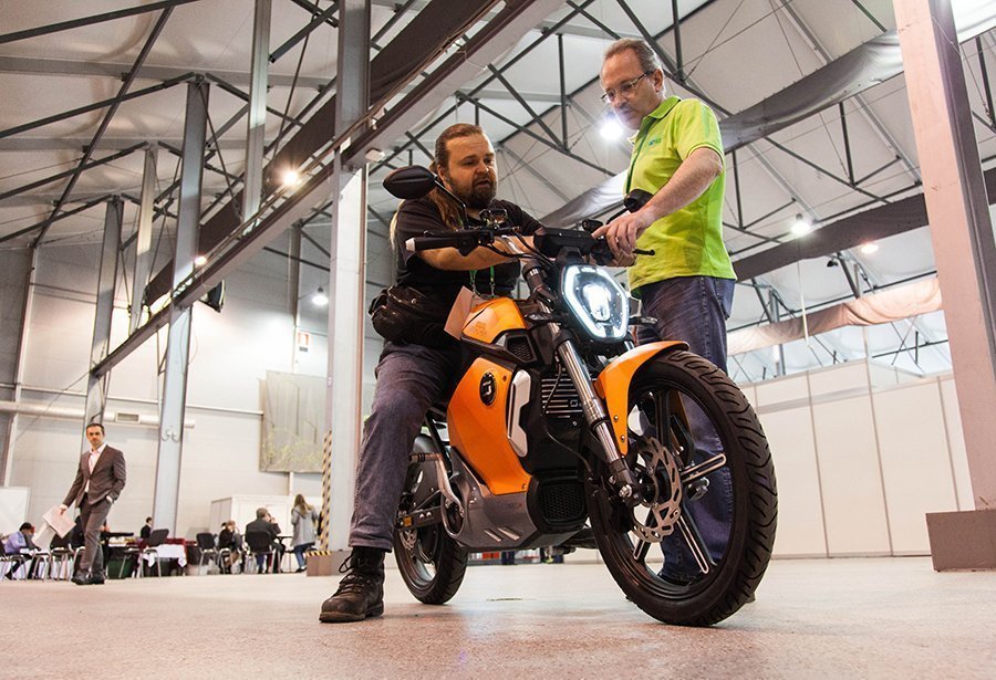 Большой популярностью пользовался также и электромотоцикл Soco, также представленный компанией Eltreco, как официальным дилером, который многие посетители выставки захотели испытать в деле