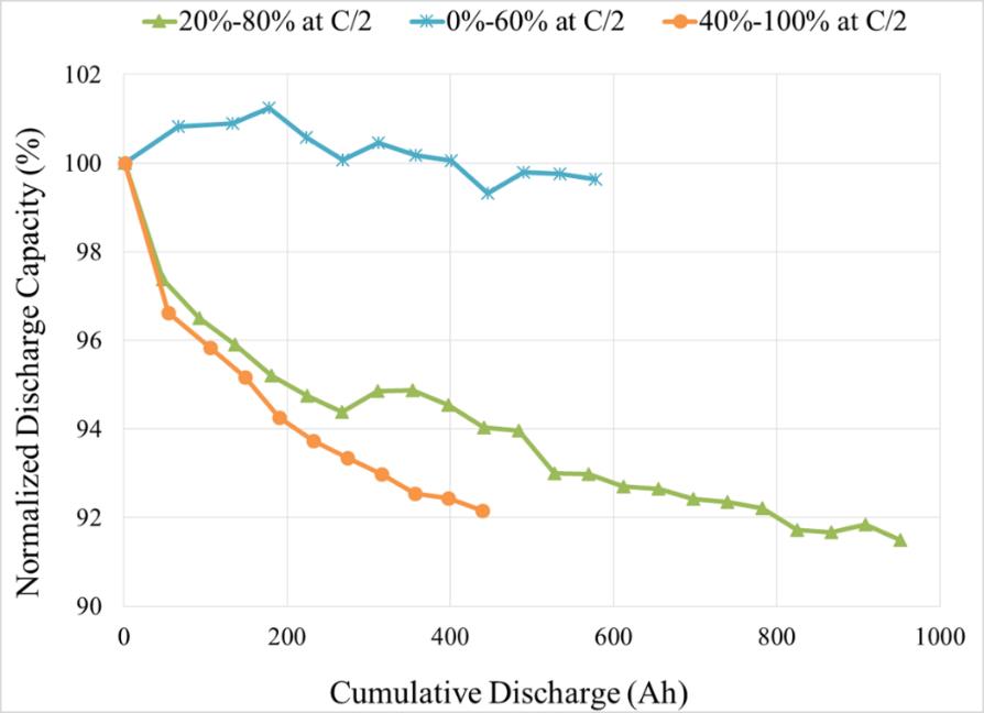 Цель исследования и испытаний CALCE (The Center for Advanced Life Cycle Engineering) состояла в том, чтобы получить научное обоснование предположения, что уменьшение степени заряда аккумулятора (SoC) минимизирует уровень деградации ячеек и, следовательно, увеличивает общий срок службы батареи. Это подтверждает и повседневная практика в индустрии электромобилей, демонстрирующая, что снижение SoC на 20–80% позволяет производителям предлагать 8-летнюю гарантию на АКБ электрокаров для конечных пользователей.