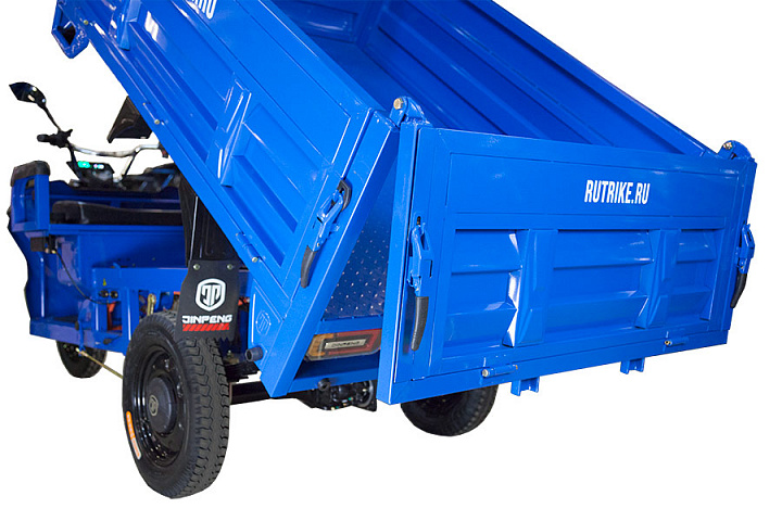 Электрический трицикл Rutrike D5 гидравлика оснащён крепким и вместительным кузовом с высокими бортами и гидравлическим подъёмным механизмом, позволяющим быстро осуществлять погрузку-разгрузку. Мощный гидравлический подъёмный привод позволяет поднимать кузов с загрузкой до 400 кг. А общая грузоподъёмность трицикла составляет до 900 кг.