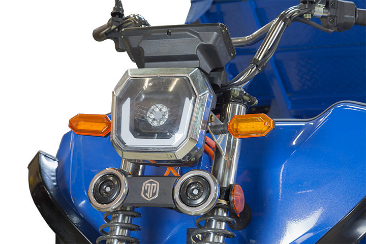 На трицикле штатно установлена противоугонная сигнализация и современная цифровая приборная панель, а передний и задний тормоза приводятся в действие гидравликой при нажатии на педаль.