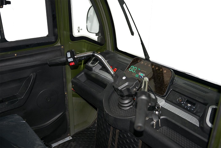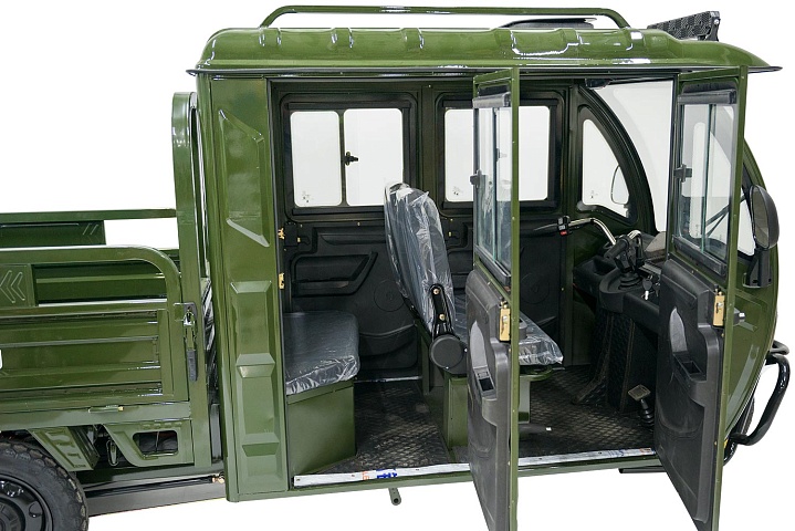 Трицикл оборудован закрытой кабиной с четырьмя дверьми и двумя рядами сидений — переднее для водителя, второй ряд — для двух пассажиров. Сзади расположен грузовой отсек с откидными бортами для перевозки грузов общим весом до 700 кг.