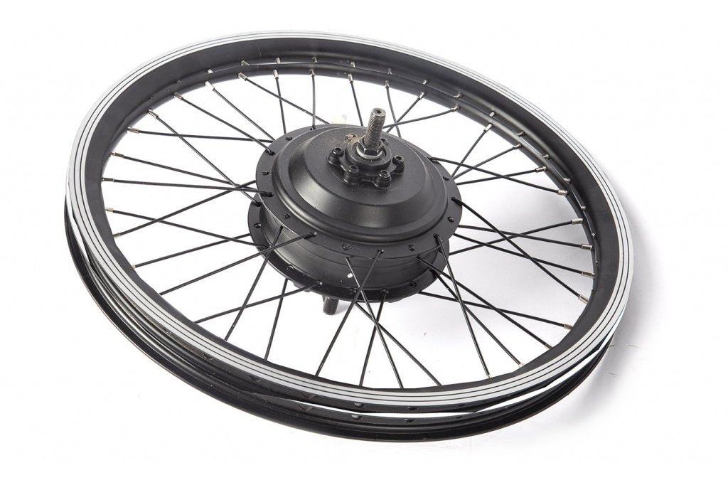 Мотор-колесо — фирменные электромоторы Eltreco мощностью от 350W до 1000W установлены в прочные двойные колёсные обода, заспицованные усиленными спицами. Конструкция ободов позволяет использовать как дисковые, так и ободные тормоза.