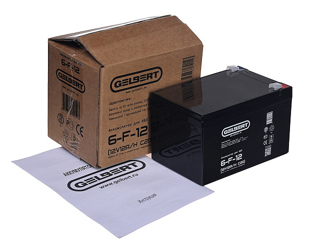 Аккумуляторная батарея Gelbert 6-F-12 выполнена по технологии AGM и состоит из утолщённых свинцовых пластин и плотного слоя сепаратора между ними. Батарея не требует обслуживания на протяжении всего цикла эксплуатации. Отлично подходит для работы в системах безопасности и сигнализации, системах бесперебойного питания, системах аварийного освещения, в лёгком и детском электротранспорте и в других схожих сферах применения.