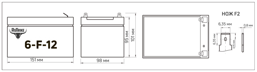 Аккумулятор RuTrike 6-F-12 (12V12A/H C20)