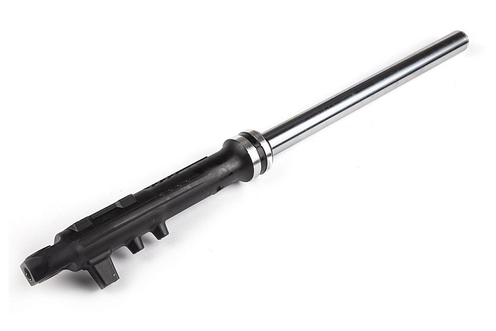 Обратите внимание, что правый и левый амортизаторы отличаются! На левом предусмотрено крепление для тормоза.