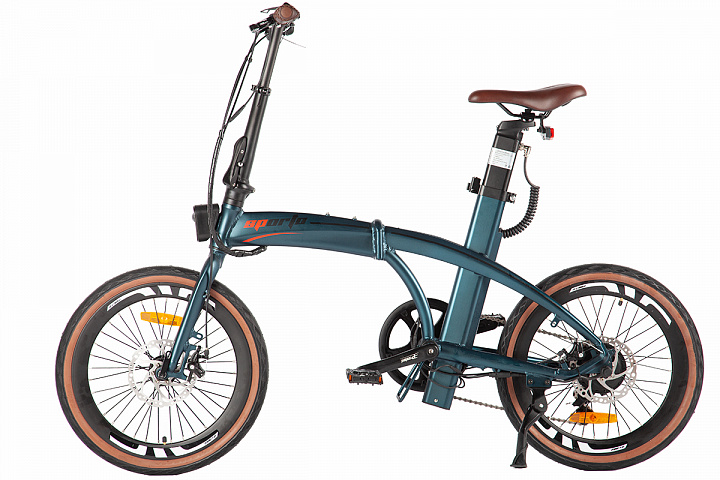 Складной электровелосипед Sporto построен на алюминиевой раме с изящными 20-дюймовыми колёсами на высоких стильных спортивных ободах с узкими сликовыми покрышками, имеющими потрясающий накат, выглядит максимально современно и очень стильно!