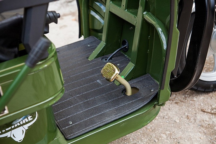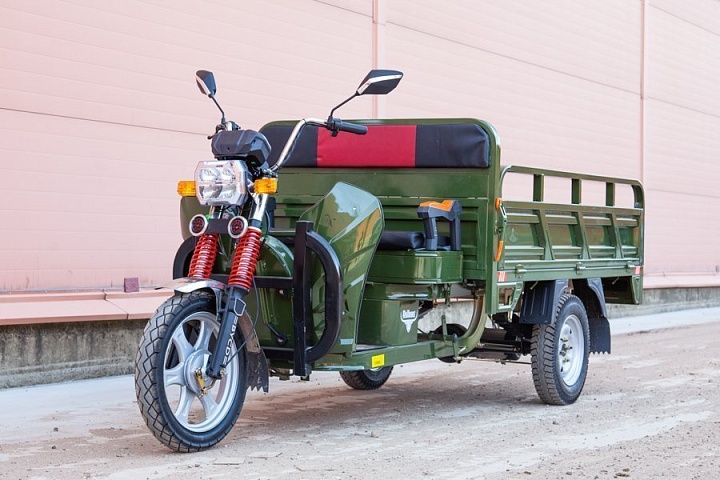 Надёжный барабанный тормоз обеспечивает безопасное передвижение, а усиленные гидравлические амортизаторы делают езду комфортной даже на ухабистой дороге. Модель имеет вместительный грузовой отсек с мощными бортами.