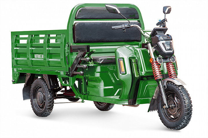 Мощность двигателя этой модели - 1200 Вт. Электротрицикл имеет задний привод, усиленные передние гидравлические амортизаторы и задние рессоры. Езда будет приятной даже на извилистой проселочной дороге. Максимальная скорость составляет 25 - 30 км/ч. На полную зарядку АКБ потребуется от 8 до 10 часов. Модель снабжена барабанным тормозом и охранной сигнализацией.
