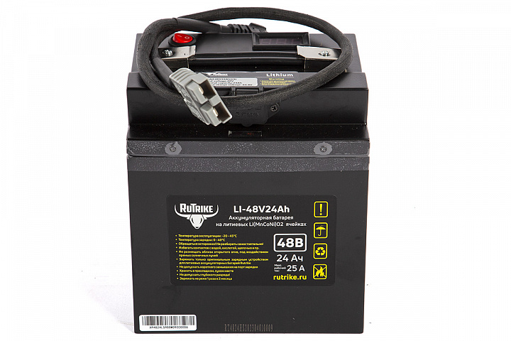 Аккумулятор RuTrike 48V24A/H Li(MnCoNi)O2 предназначен для устройств большой мощности. Имеет увеличенный срок службы (более 5 лет), высокую производительность и неприхотливость к погодным условиям (рабочие температуры: от -15 до +60°С).