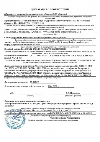 Наличие сертификата или декларации гарантирует качество и безопасность аккумуляторной батареи и её соответствие стандартам, утверждённым в Российской Федерации.