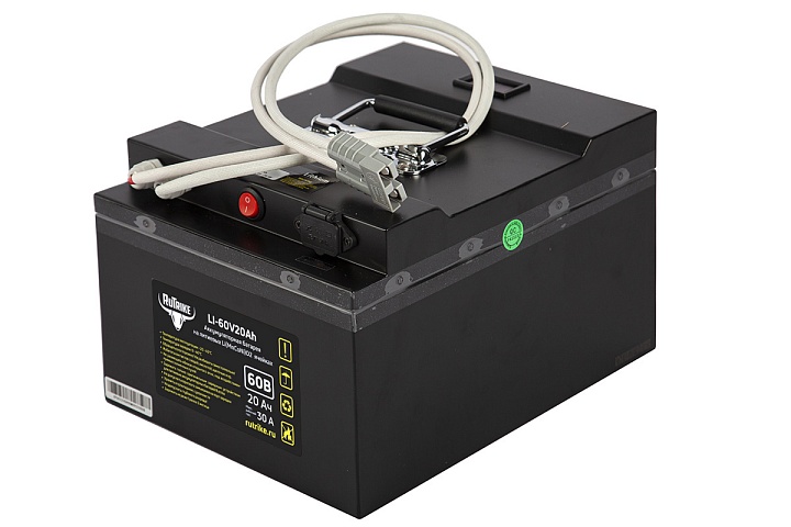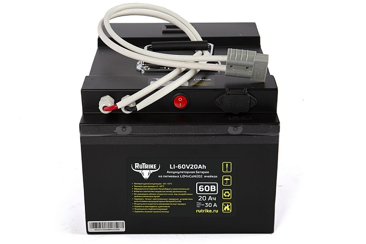 Аккумулятор RuTrike 60V20A/H Li(MnCoNi)O2 предназначен для устройств большой мощности. Имеет увеличенный срок службы (более 5 лет), высокую производительность и неприхотливость к погодным условиям (рабочие температуры: от -15 до +60°С).