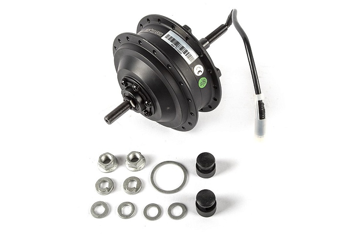 Фирменный электромотор Eltreco с рабочим напряжением 36 Вольт и номинальной мощностью 350 Ватт. Предназначен для установки в заднее колесо с ободом 29"