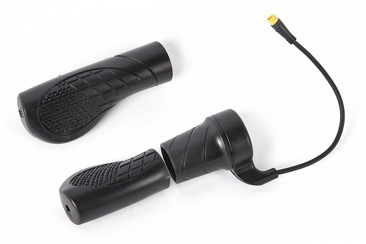 Две ручки тормоза, идущие в комплекте, снабжены концевиками, которые отключают электромотор при торможении.
