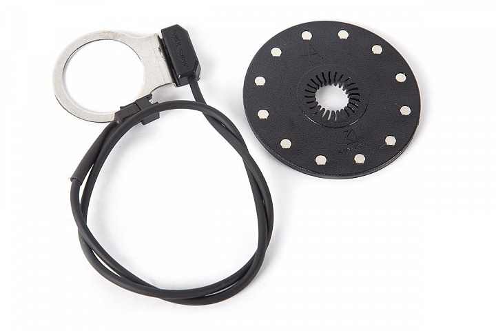 На каретку устанавливается датчик вращения педалей — он необходим для активации режима помощника, который активирует электромотор при вращении педалей. Усилия помощи электромотора при педалировании регулируются путём выставления уровня PAS (ассистента) на управляющем велокомпьютере.