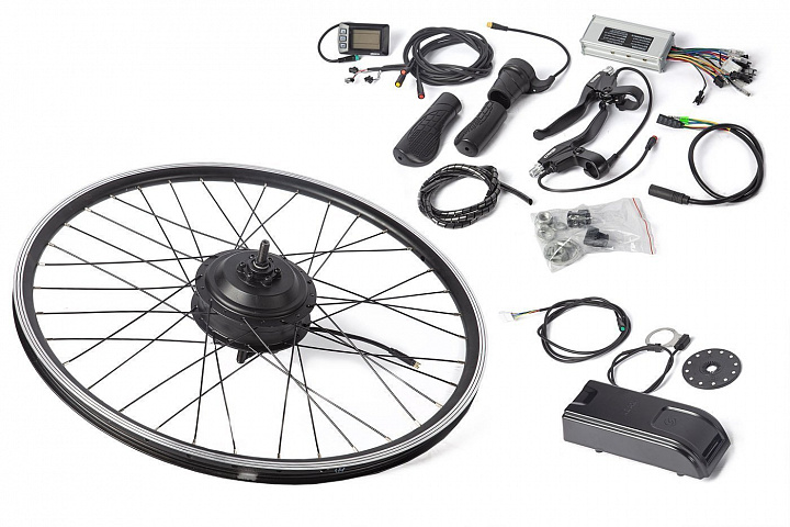 Данный комплект электрификации разработан на базе мотор-колеса Eltreco 36V 500W, смонтированного в двойной 27,5-дюймовый заспицованный обод заднего колеса. Комплект поставляется в собранном виде, готовый к эксплуатации после установки на ваш велосипед.