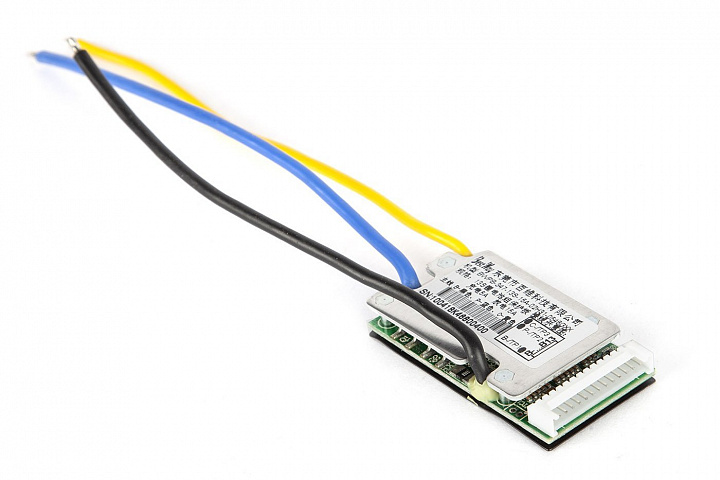 Плата BMS - это плата защиты аккумуляторной батареи. Плата подключается параллельно аккумулятору электровелосипеда. Она включает в себя систему балансировки и защиты аккумуляторной батареи. Провода платы хорошо изолированы и влагозащищены, а сама плата имеет металлическую пластину, которая не даёт ей перегреться.
