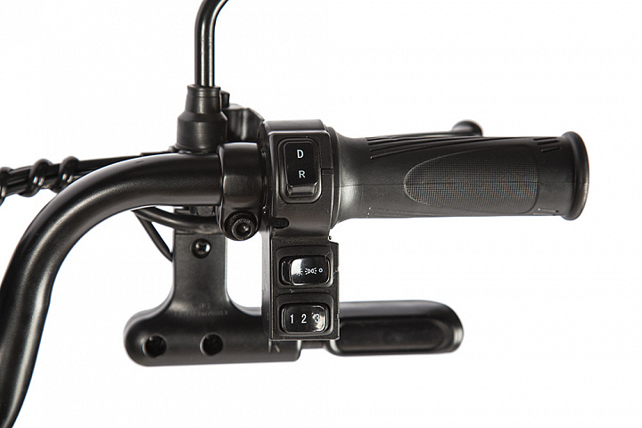 Трёхколесная конструкция обеспечивает устойчивость и маневренность, что позволяет легко перемещаться по людным улицам и ограниченным пространствам. Колесо размером 8"-3,00 обеспечивают плавную и комфортную езду вне зависимости от рельефа местности.