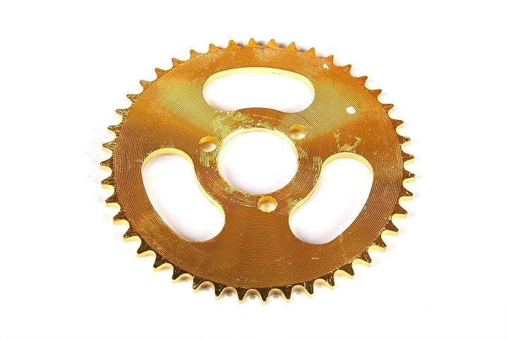Задняя звезда цепного привода электросамоката Eltreco Rhino 1000W. [ https://www.eltreco.ru/market/catalog/elektrosamokaty/item/rhino1000w_lcd/ ] Этот самокат, оснащенный коллекторным электромотором мощностью 1000W и 36-вольтной аккумуляторной батареей, является обновленной версией модного транспортного средства, которое позволит с легкостью пронизывать «пробки» городского трафика в будни, а также активно и с удовольствием отдыхать в выходные. Ведомая звезда – один из высоконагруженных элементов цепной передачи, поэтому ее естественный износ во время эксплуатации транспортного средства является вполне ожидаемым и прогнозируемым, особенно если электросамокат используется часто и при любой погоде. Большее количество зубьев обеспечивает высокую плавность хода и увеличивает ресурс службы детали. Задняя звезда электросамоката Eltreco Rhino 1000W имеет следующие технические характеристики: